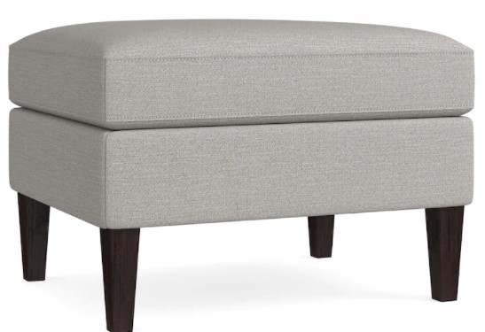 Webbed seating construction means you can comfortably settle your feet or a decorative tray, or even use it as a seat. A smooth, top-stitched top and tall, tapered wood legs in walnut finish give it a clean look. Choose your fabric from a range of possibilities.